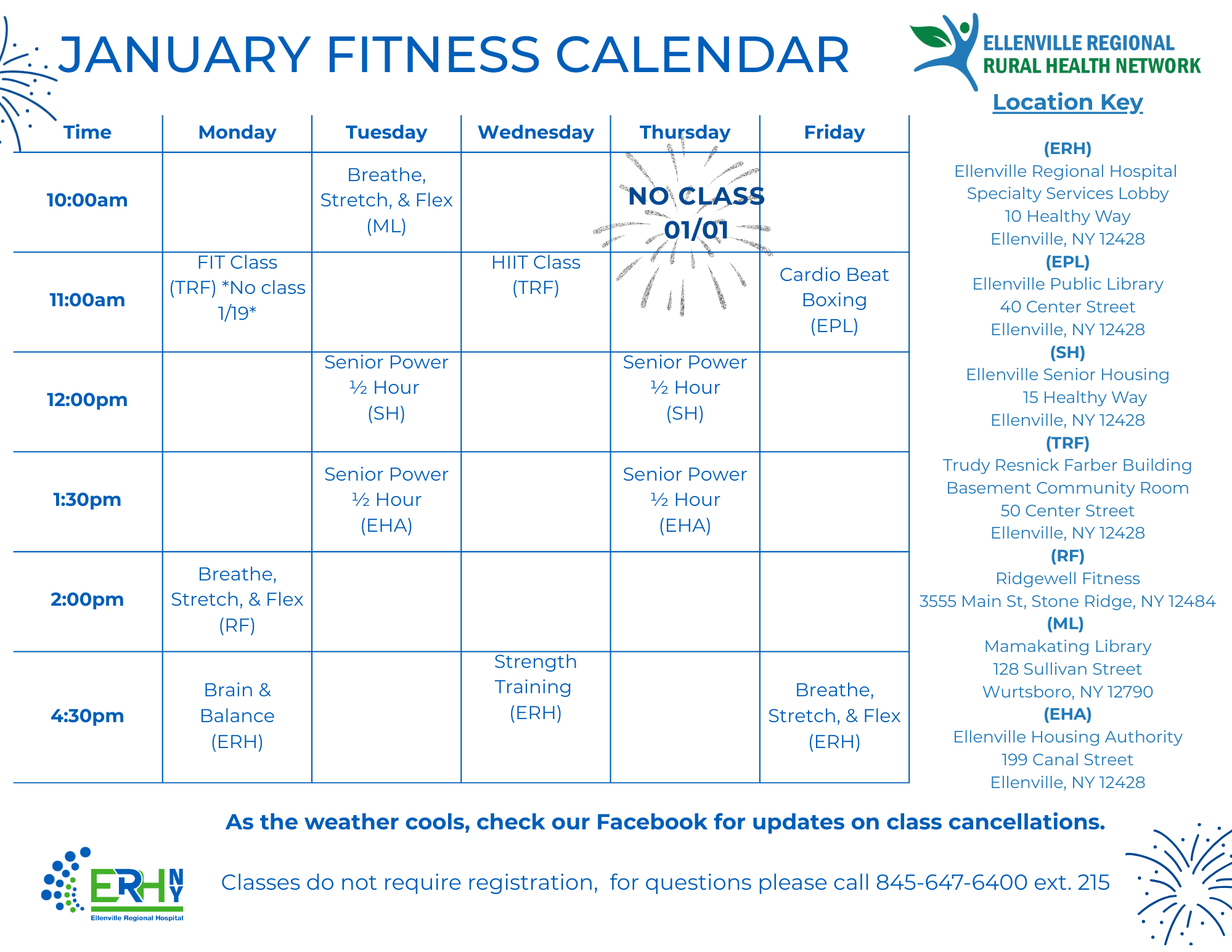 ERRHN offers free in-person fitness classes throughout the year. Classes include, but are not limited to Yoga, Tai Chi, Strength Training, Brain & Balance, Walking Groups, and more!