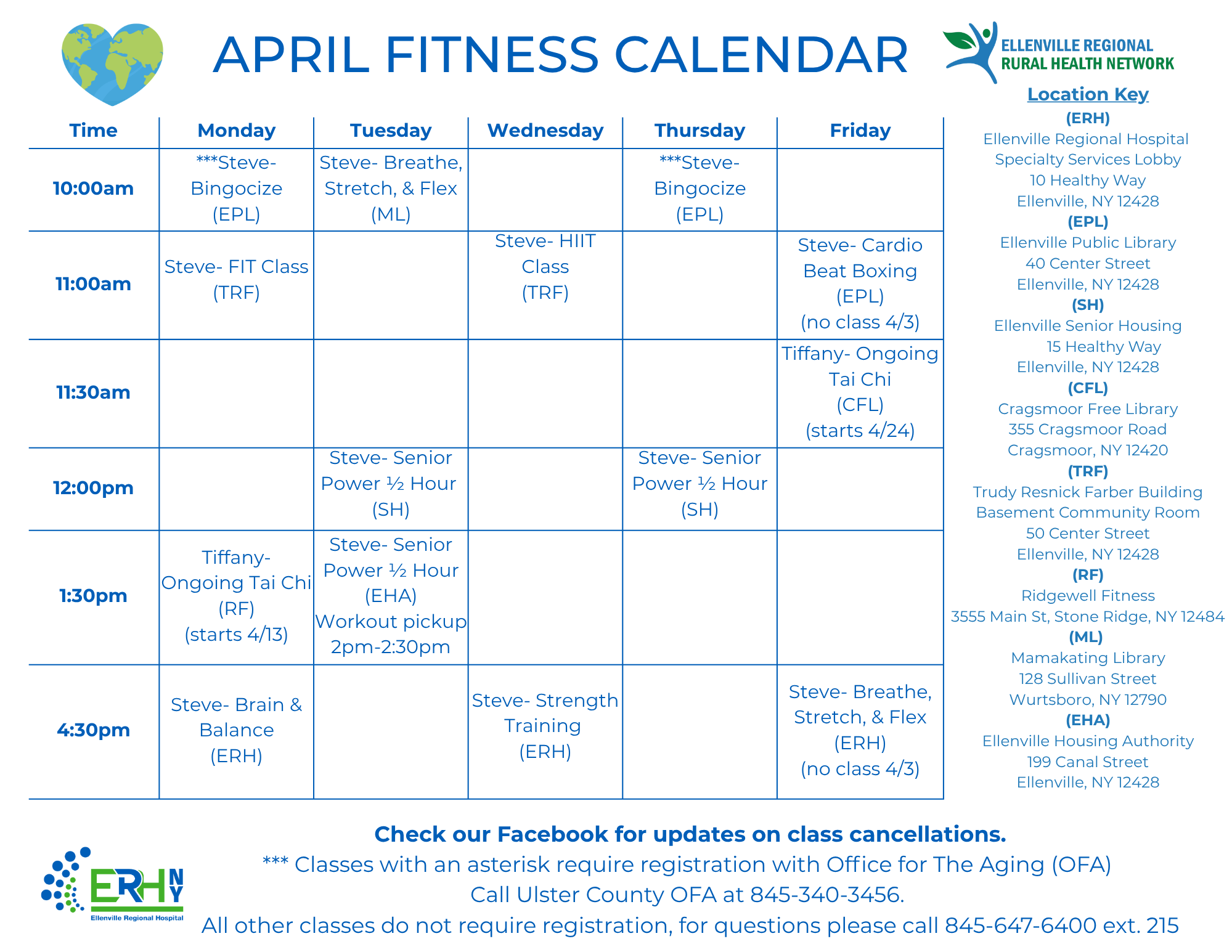 Class cancellations and updates are posted on our Facebook page: